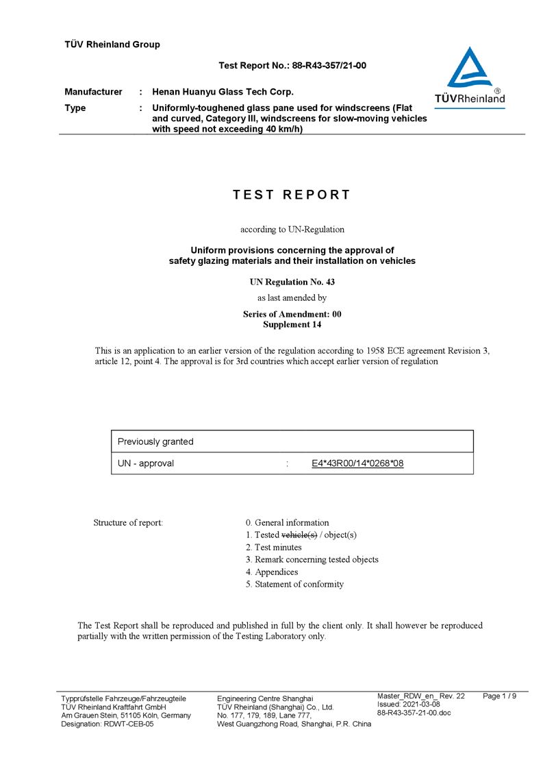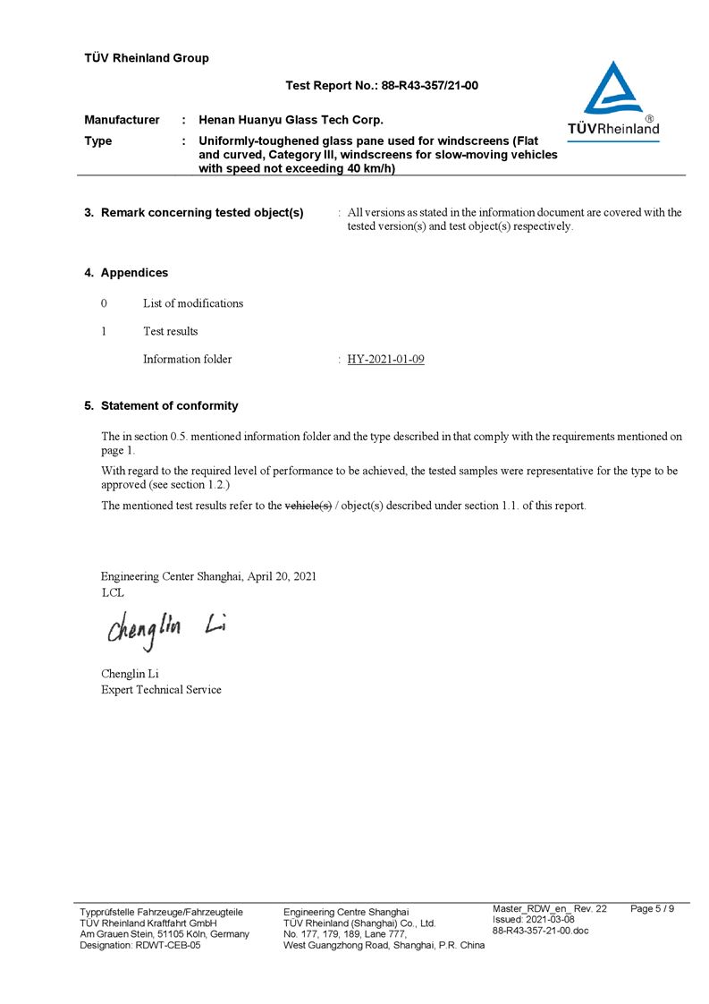 河南環(huán)宇玻璃科技股份有限公司年產(chǎn) 5 萬平方米驗(yàn)收報(bào)告公示